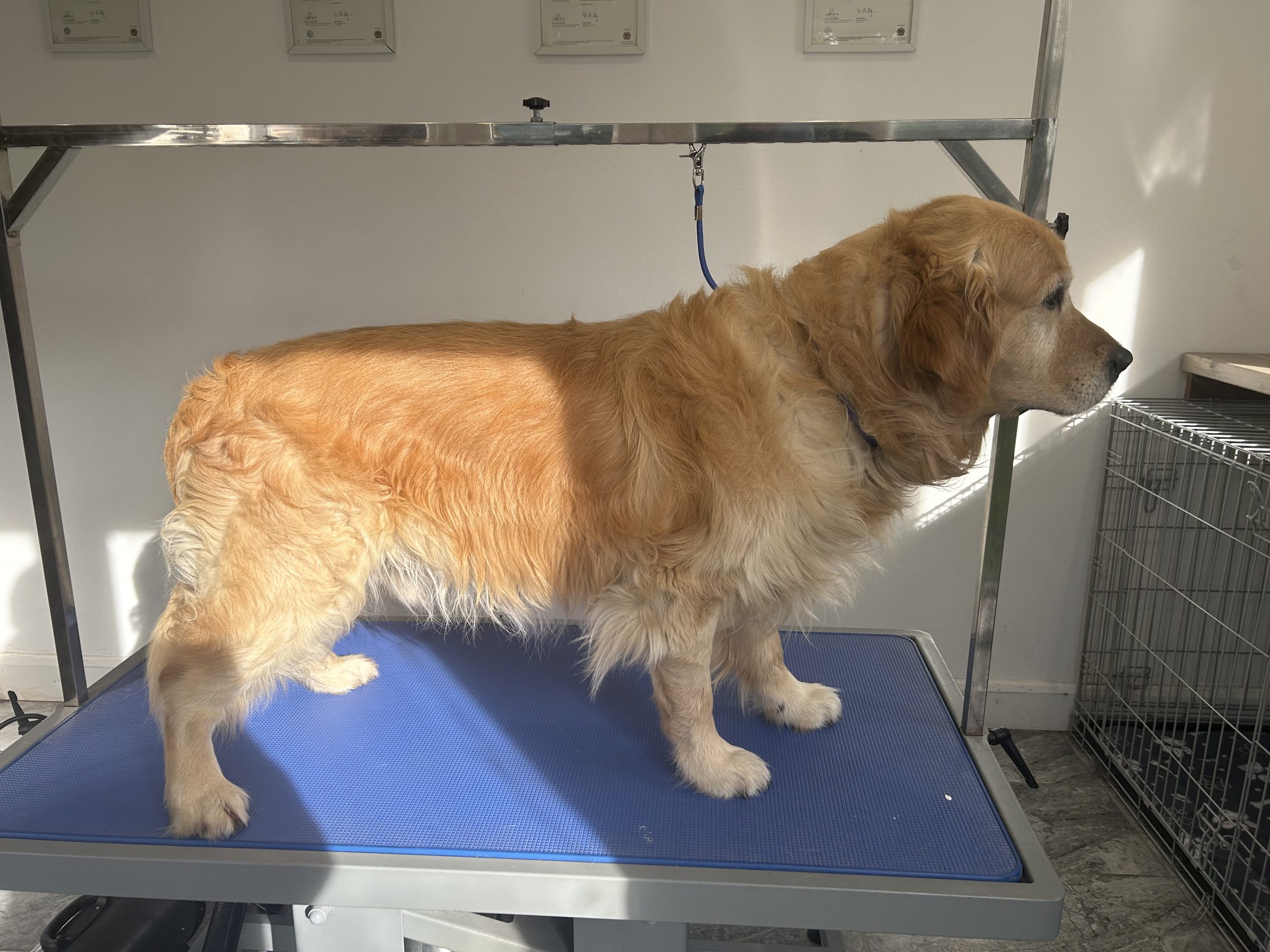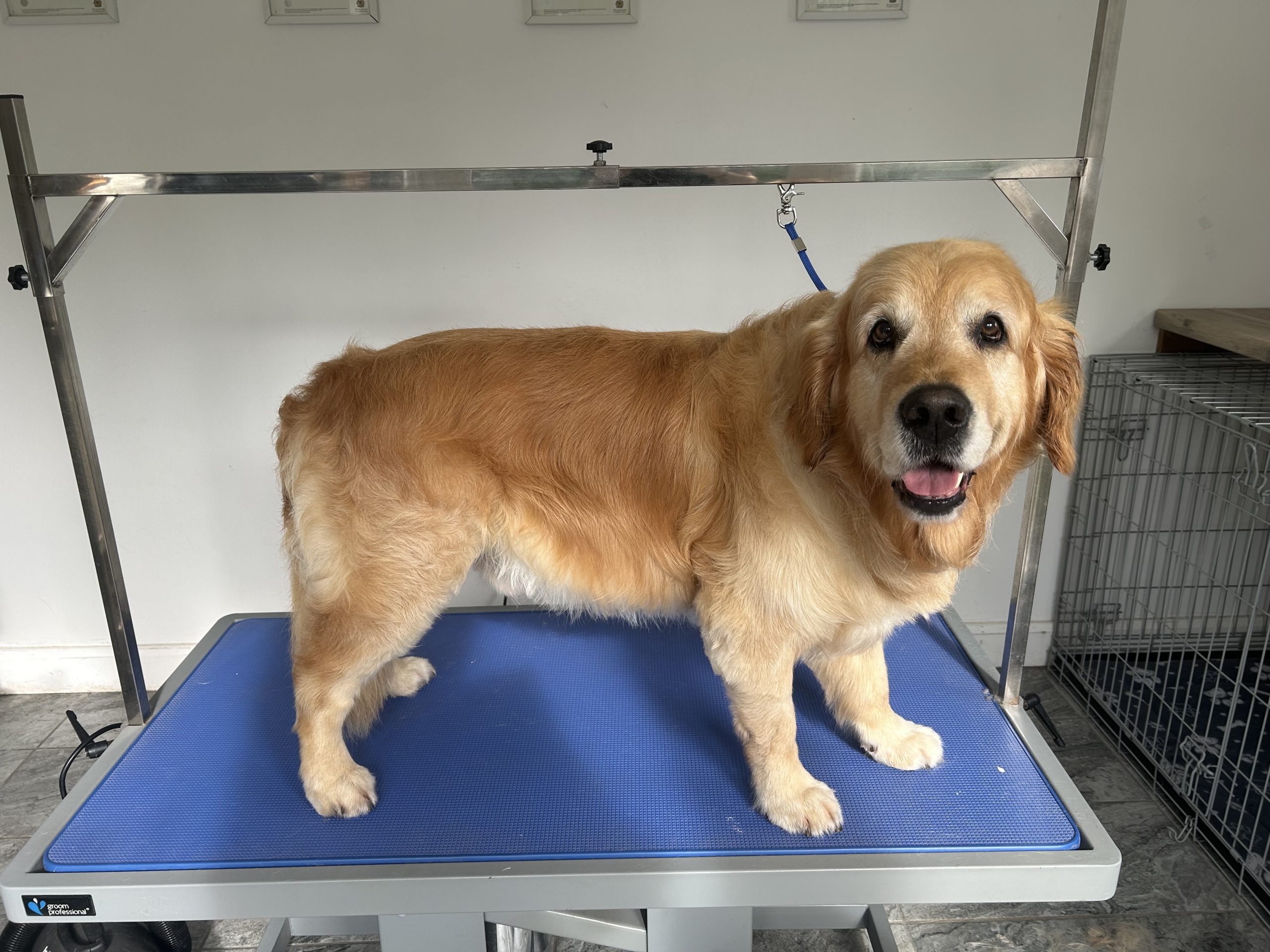 A full groom includes the same as the bath & dry but your dog will also receive styling to your requirements whether that is clipping or scissoring. Prices vary depending on the breed and size of your dog.